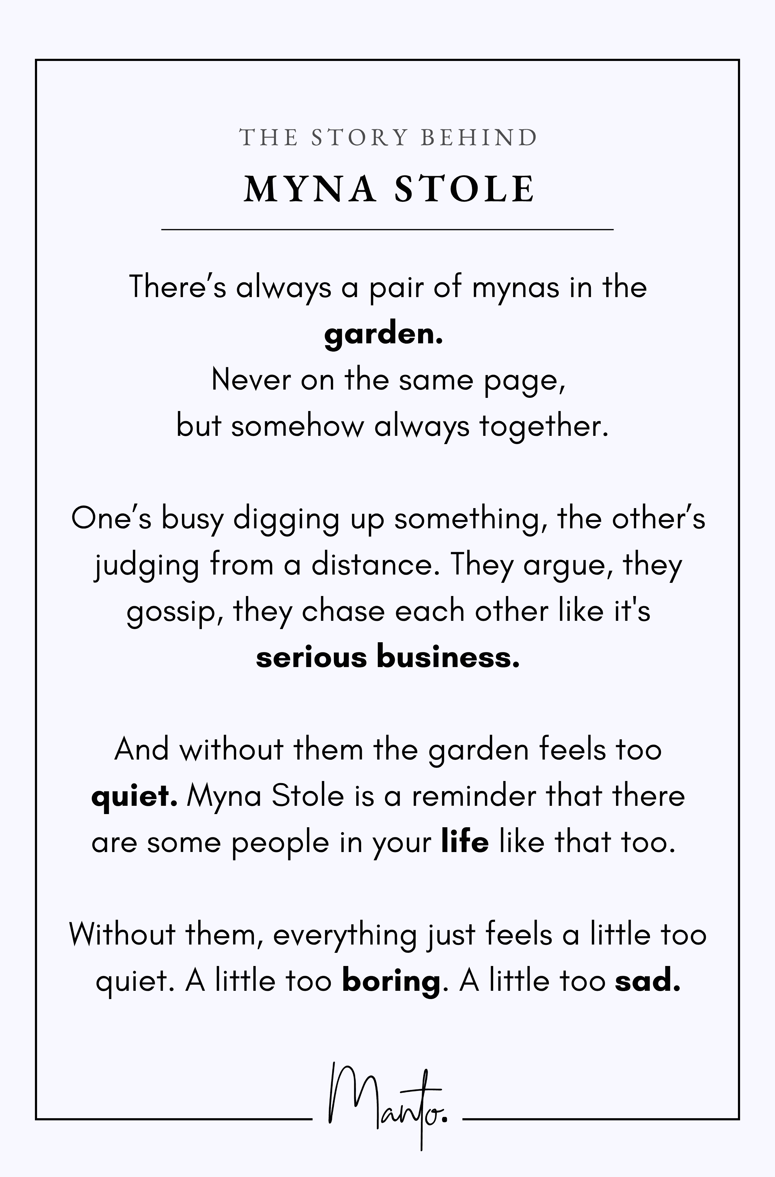 Myna Stole is a Double-Sided Pashmina Stole, featuring Urdu words calligraphed throughout. Making it the perfect layer for all your winter days.