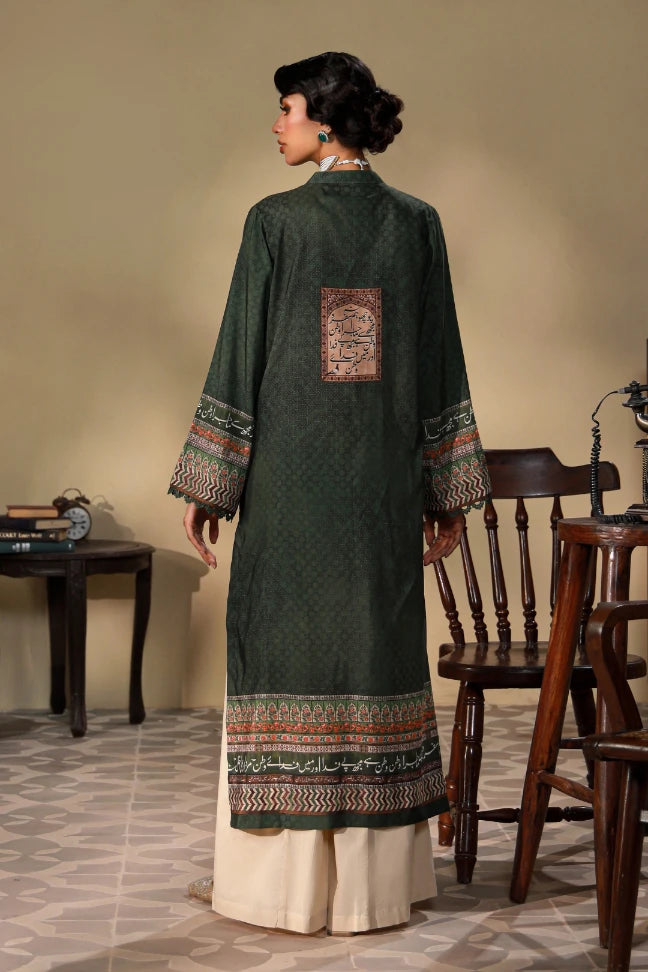 The Nisaar Kurta, made from blended cambric, is a long length printed kurta featuring the words of Mardan Ali Khan Rana calligraphed throughout.