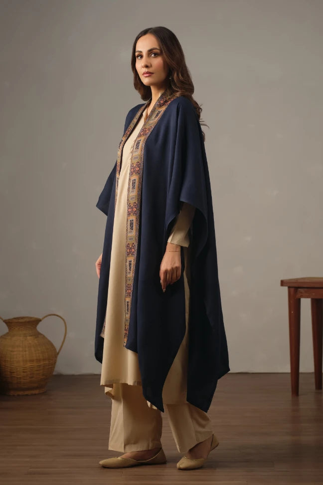 Hosla Cape made of Acrylic Wool. Featuring a unisex wrap-around style, this cape has Urdu words calligraphed on the borders.