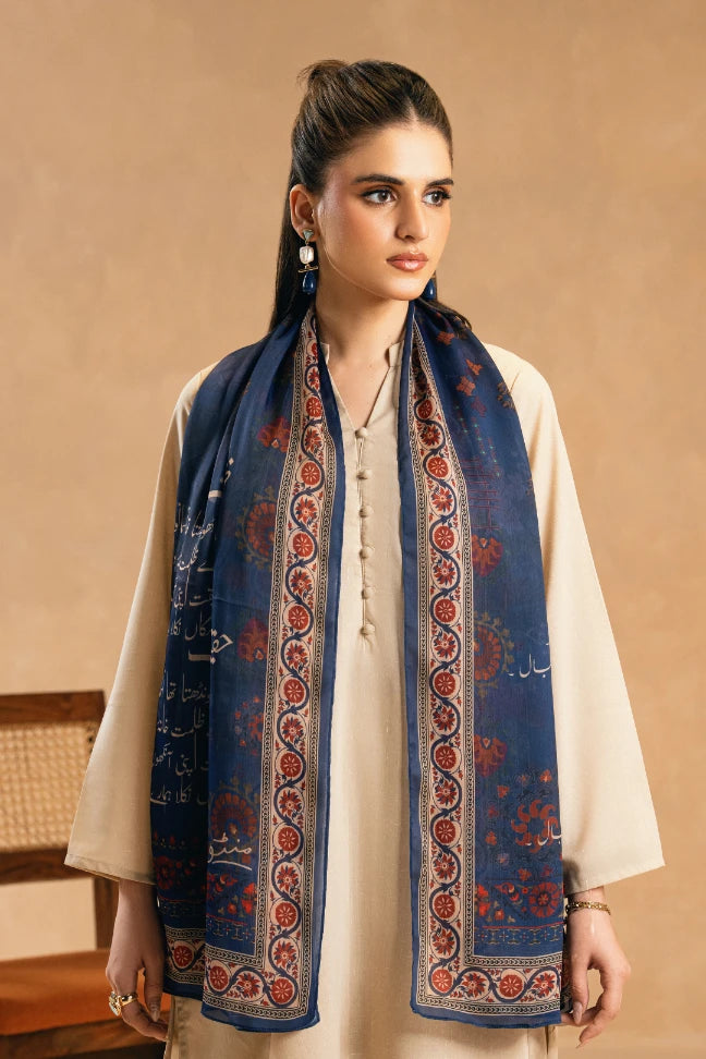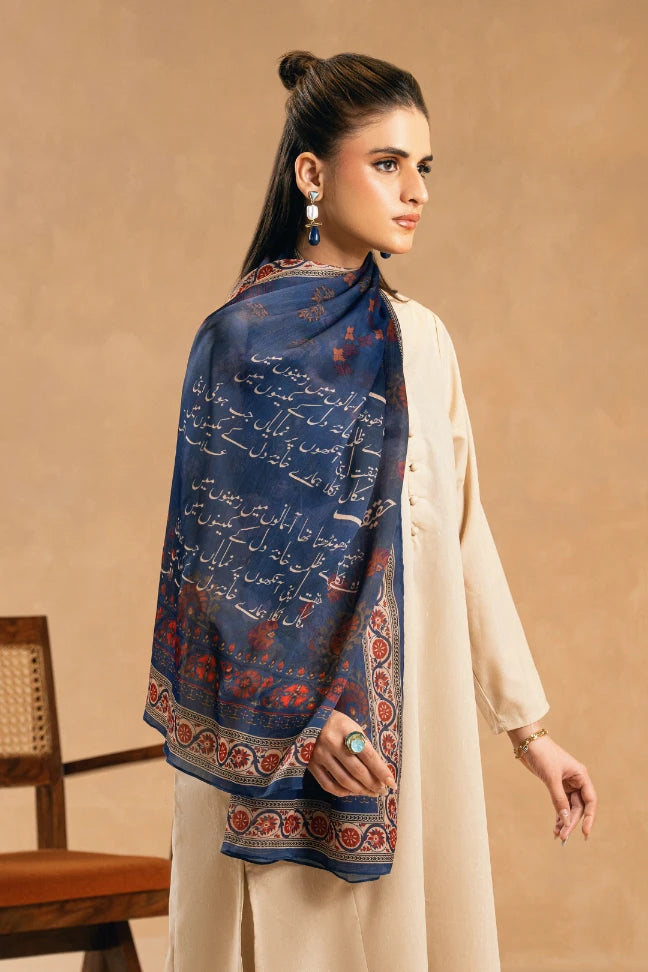 Nigaah Scarf is crafted from crinkle silk with a soft, fluid drape. Lightweight and versatile with words of Allama Iqbal