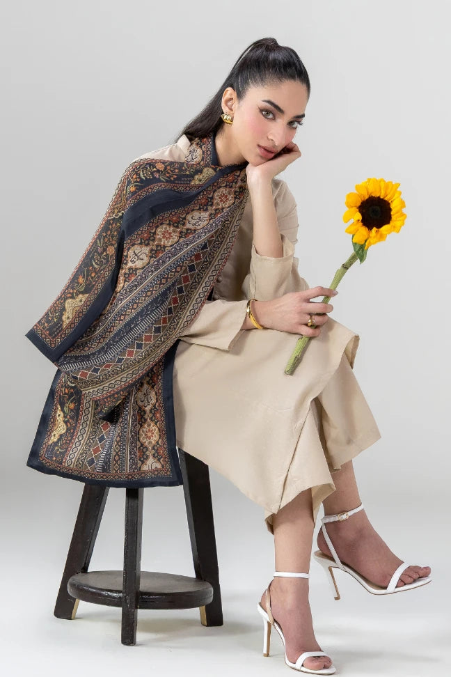Nazakat Stole made from Crinkle Silk, features the words of Mir Taqi Mir calligraphed throughout.