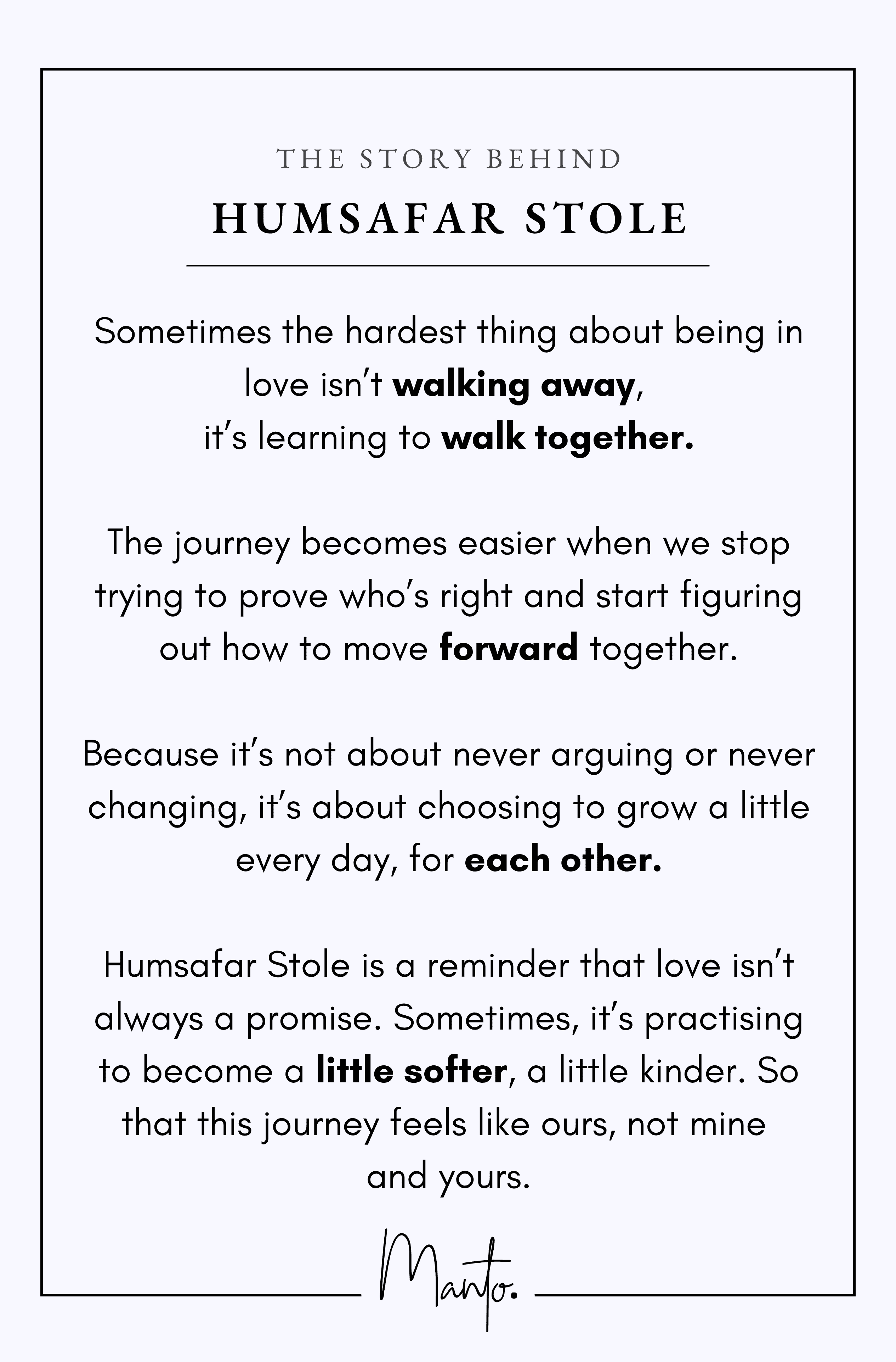 Humsafar Stole is a Double-Sided Pashmina Stole, featuring the words of Nida Fazli throughout. Making it the perfect layer for all your chilly winter days.