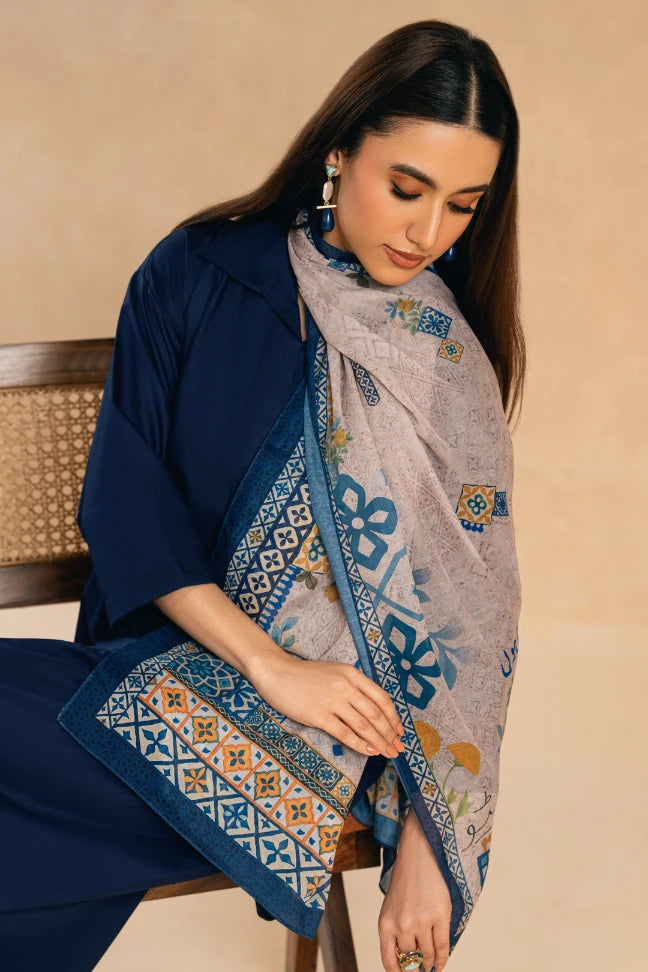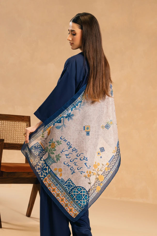 Afroz Scarf, made from swiss lawn, features the words of Allama Iqbal calligraphed throughout.