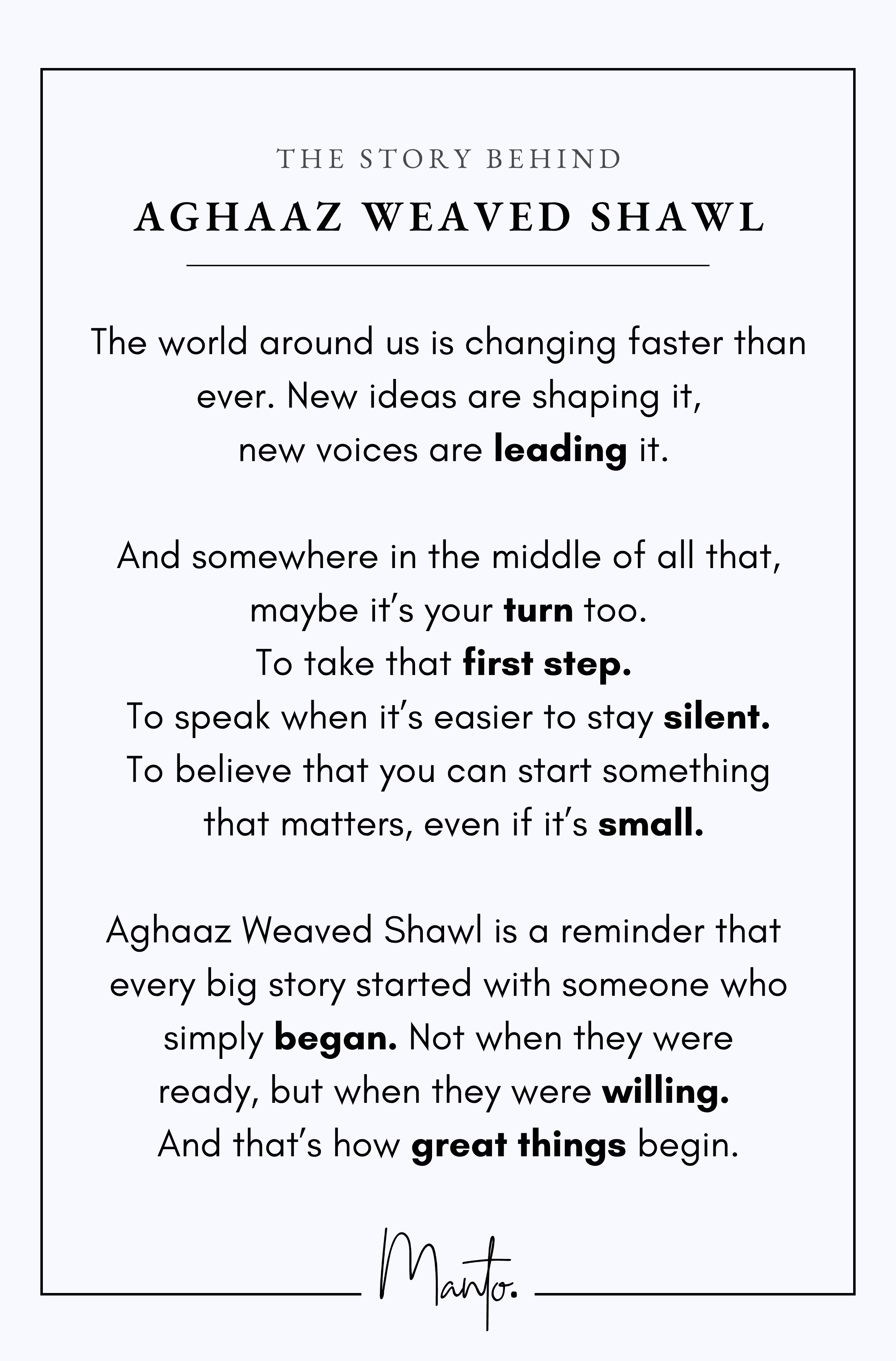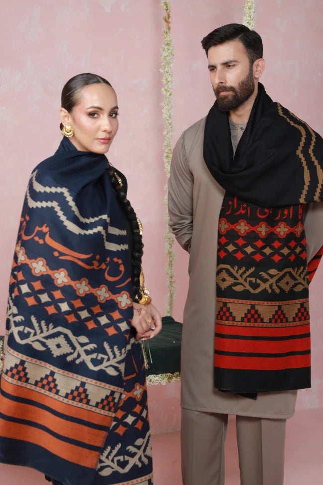 Aghaaz is a unisex Weaved Shawl, featuring the words of Allama Iqbal on the borders. Making it the perfect layer for all your chilly winter days. Available in 2 colours.