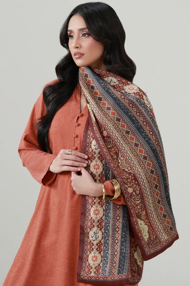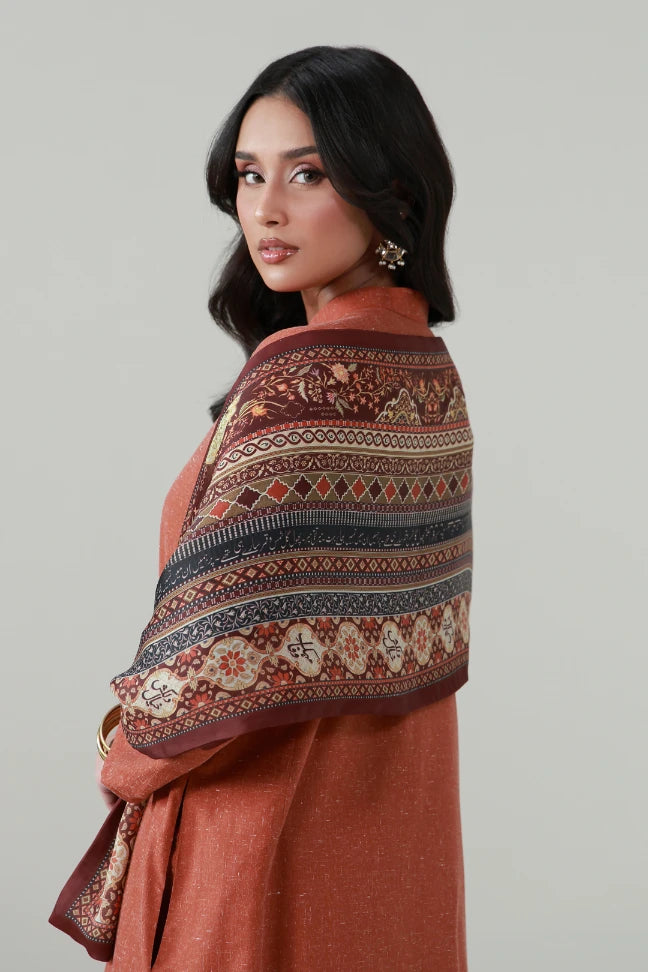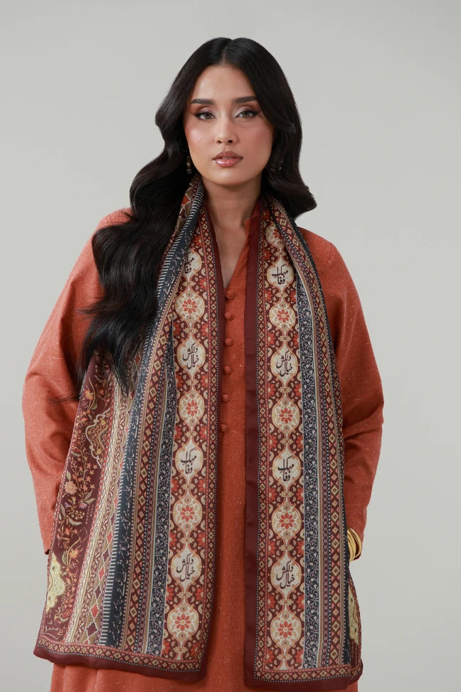 Nazakat Stole made from Crinkle Silk, features the words of Mir Taqi Mir calligraphed throughout.