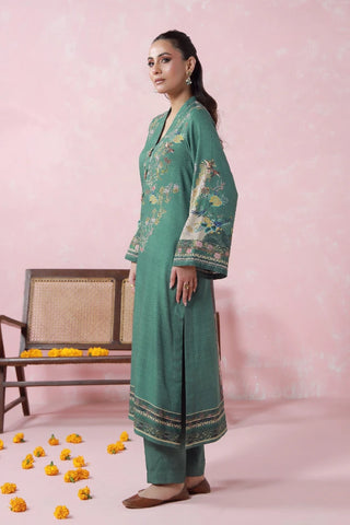 Blue Co-Ord Set, features herringbone short shirt and shalwar, embroidered with Mir Taqi Mir’s poetry.