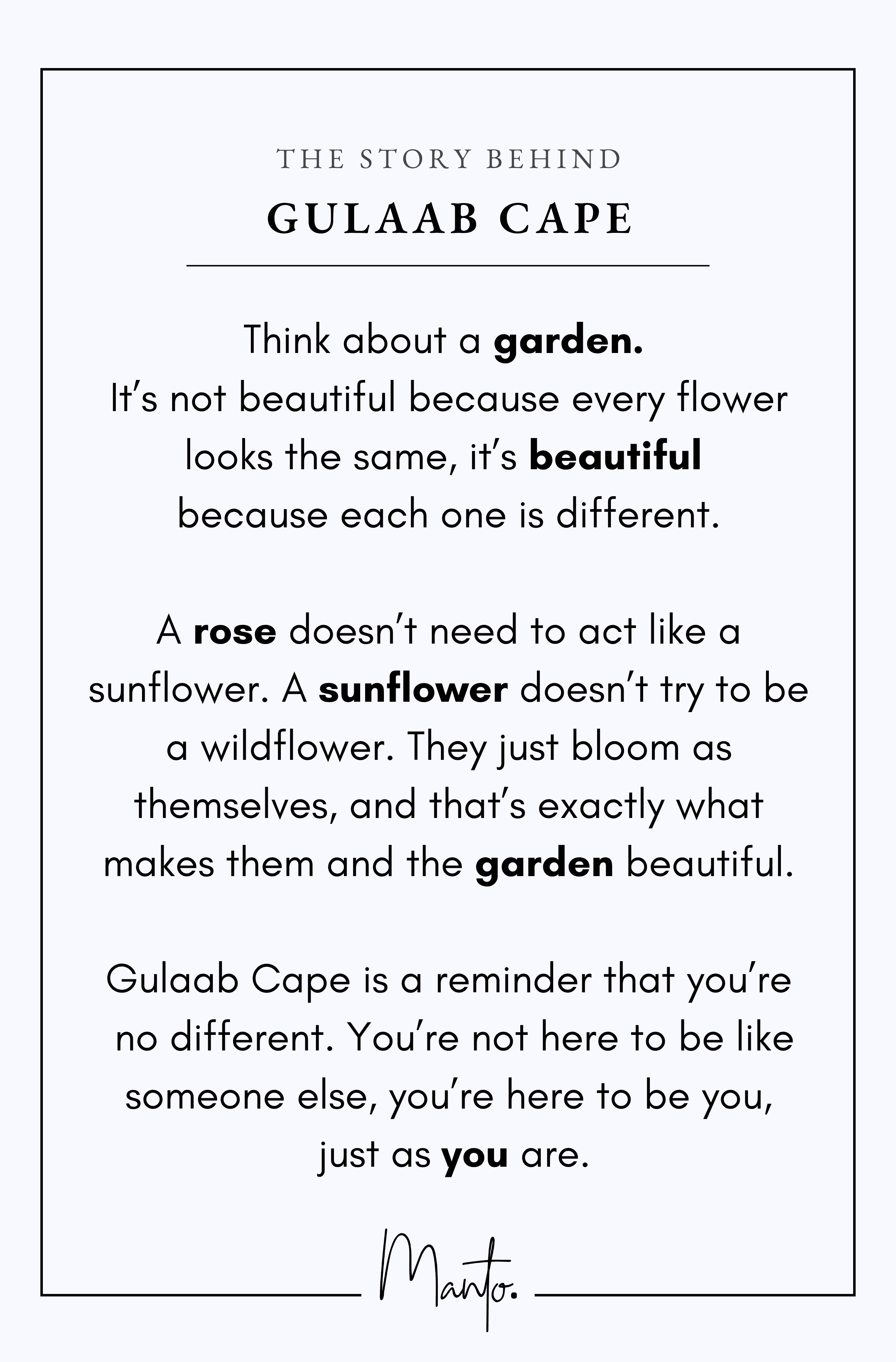 Gulaab Cape, crafted from Acrylic Wool, features a unisex wrap-around design with elegant Urdu calligraphy on the borders.