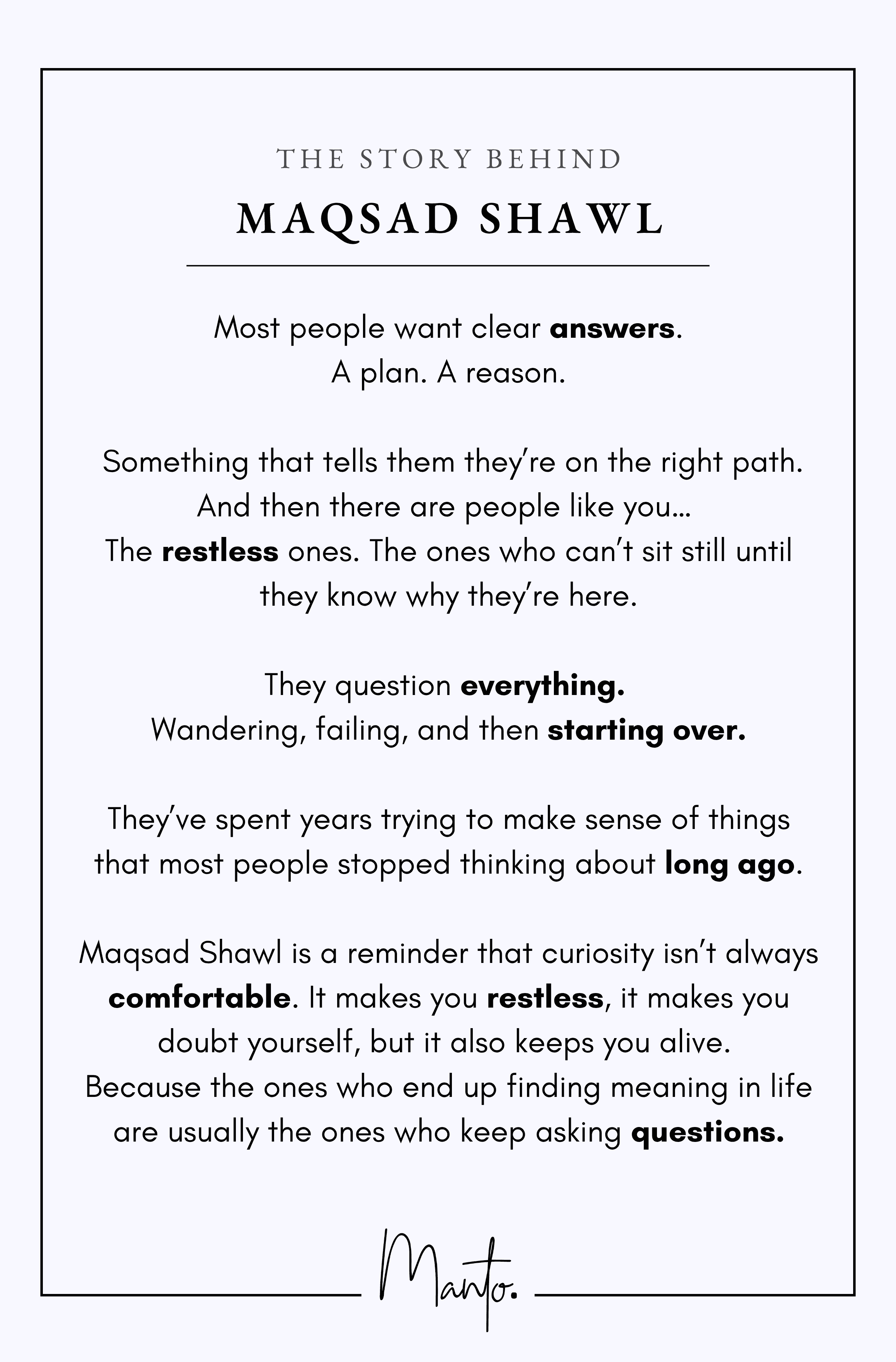 Maqsad Shawl is a reminder that curiosity isn’t always comfortable.