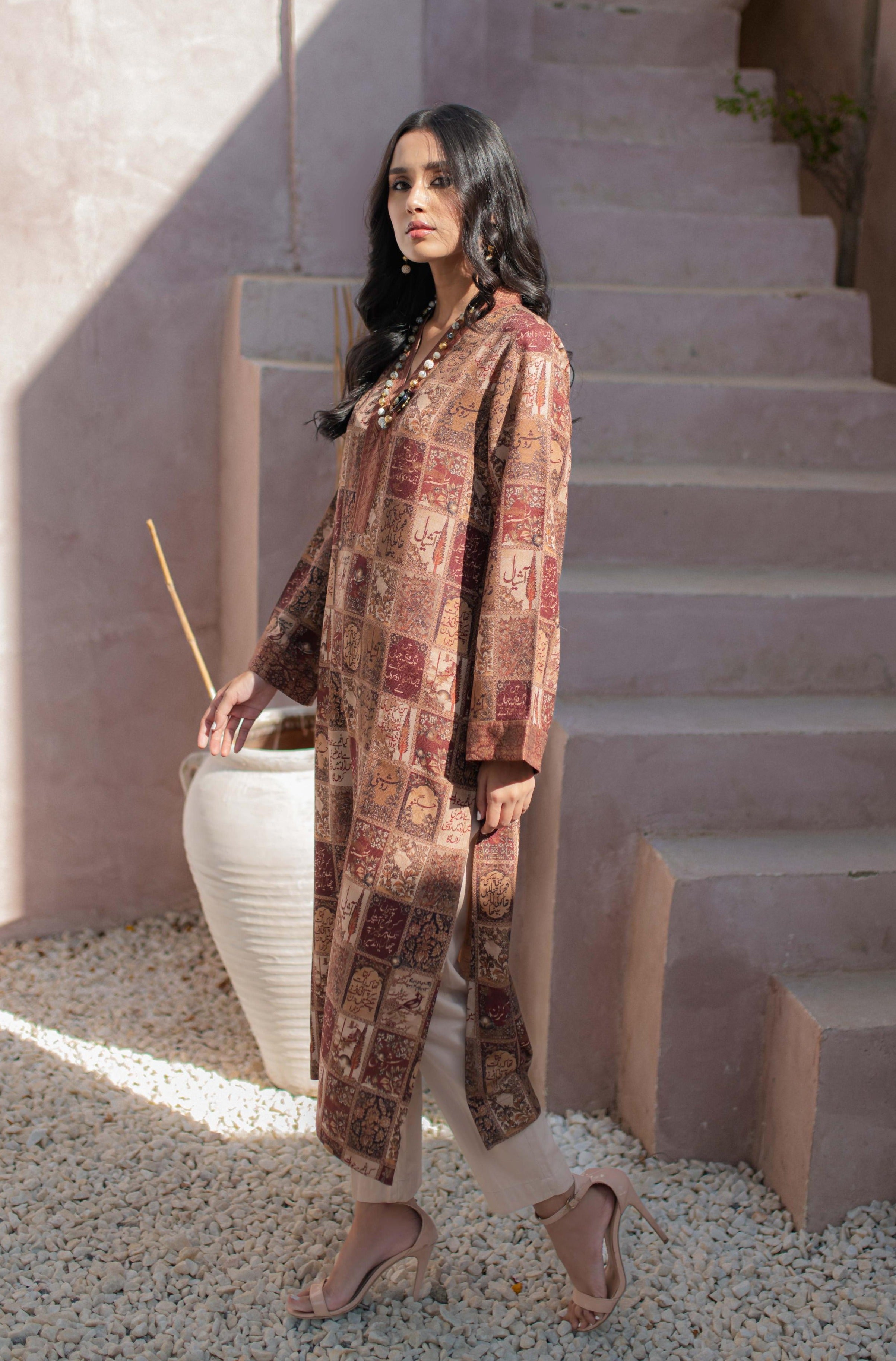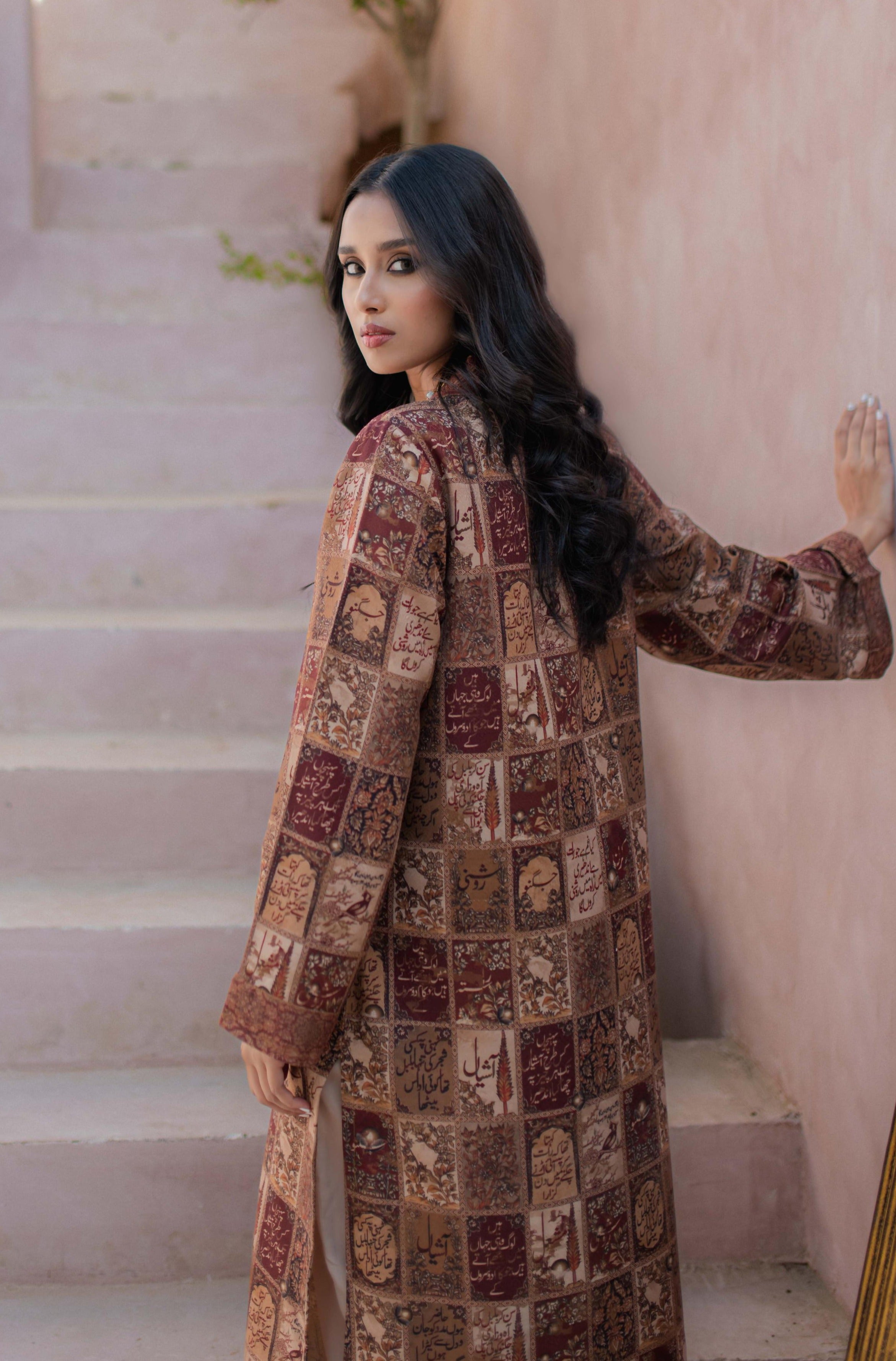 Printed Long Length Premium Jacquard Kurta, In Summer Friendly Material, Featuring Words of Allama Iqbal, Available in 3 Colors!