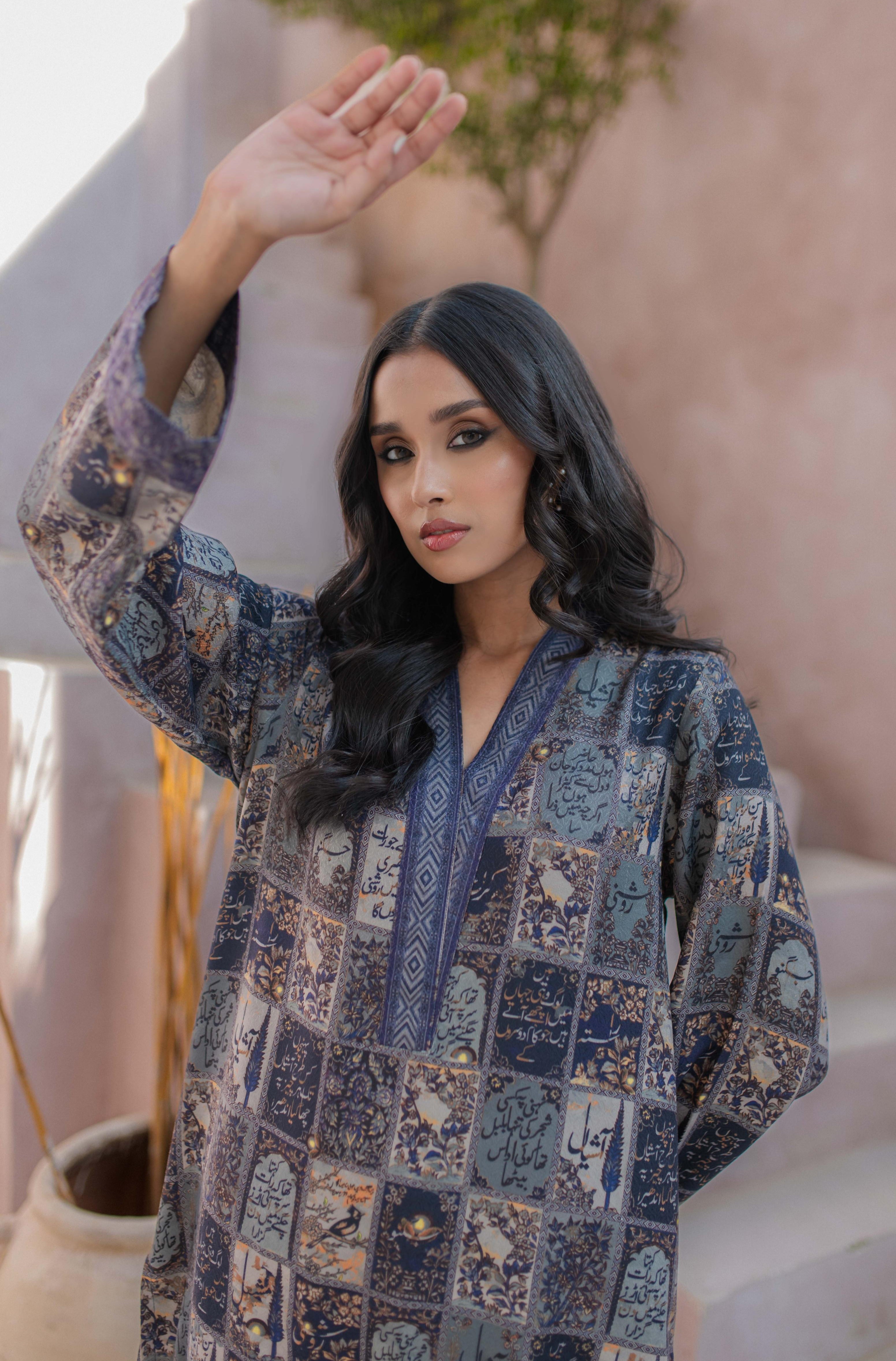 Printed Long Length Premium Jacquard Kurta, In Summer Friendly Material, Featuring Words of Allama Iqbal, Available in 3 Colors!