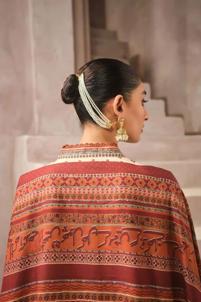 The Kiran Odhni, made from Cotton Silk, features the words of Sahir Ludhianvi calligraphed throughout. You can pair it with the Kiran Co-Ord to complete your look!