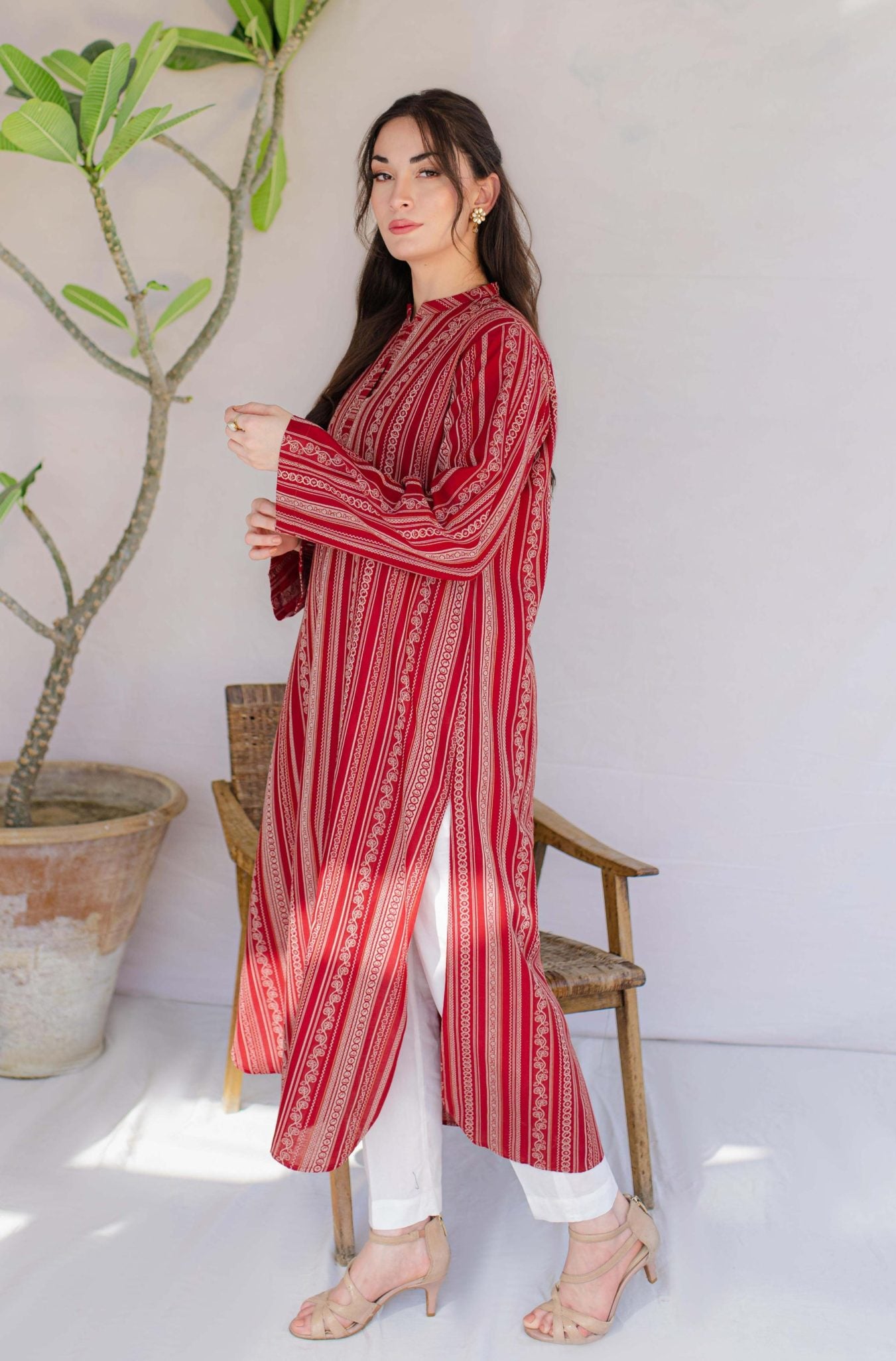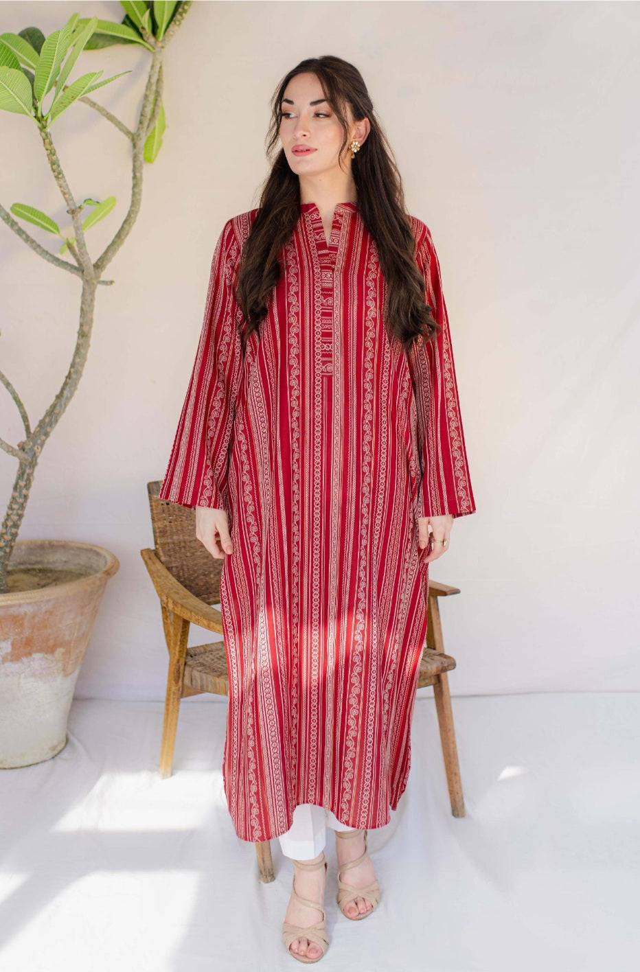 The Manzil Kurta, made from Jacquard, is a long length kurta featuring the urdu letters م , ن, ت, و