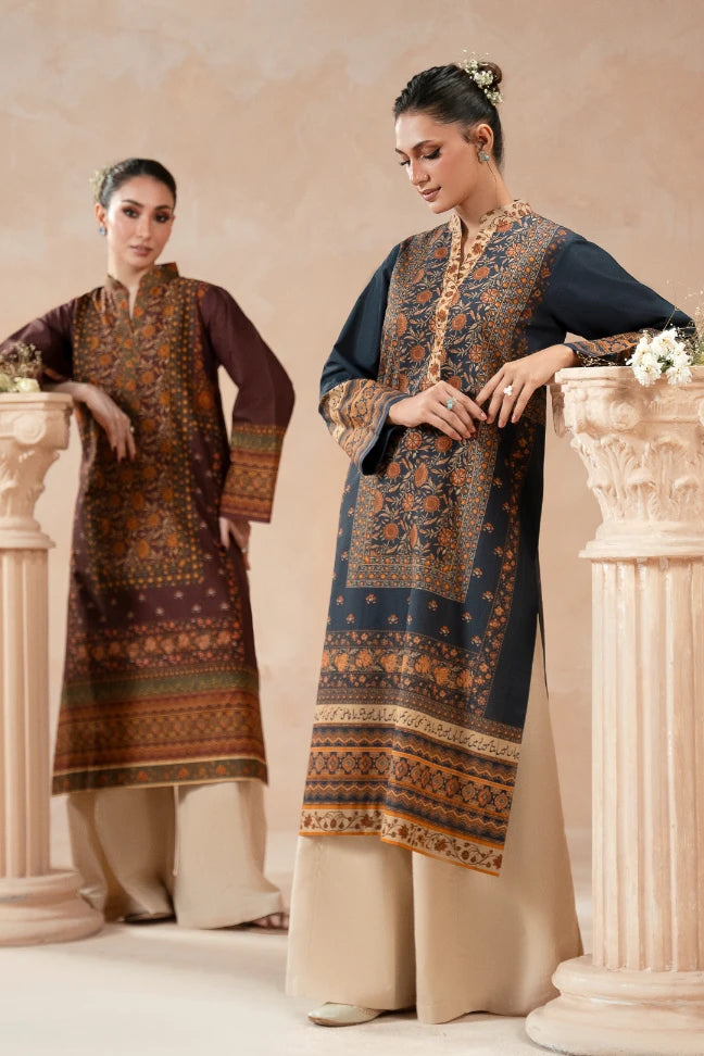 The Zuri Kurta is a long-length lawn printed kurta, featuring a collar neckline, long sleeves and poetry of Nida Fazli calligraphed throughout. Available in 2 colours.